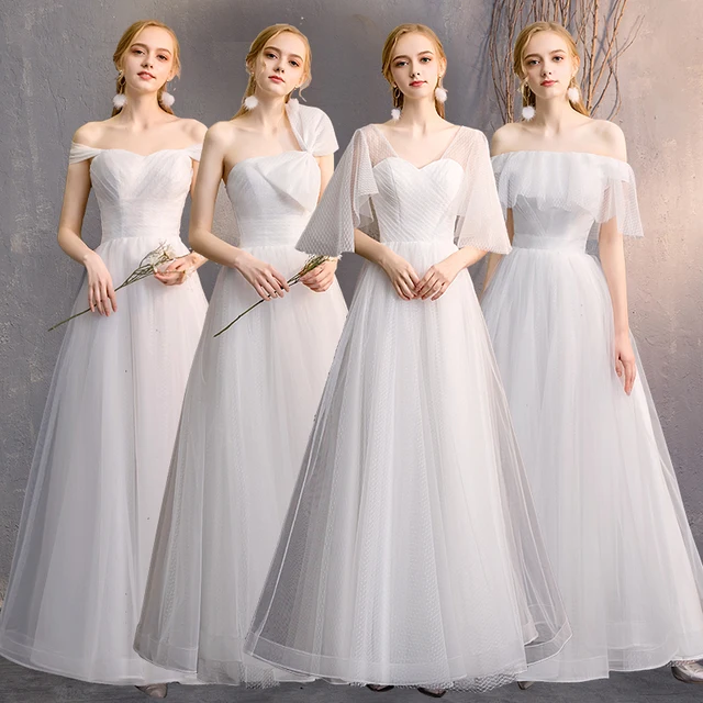 Beauty Emily Long A Line Lace White Bridesmaid Dresses 2019 For