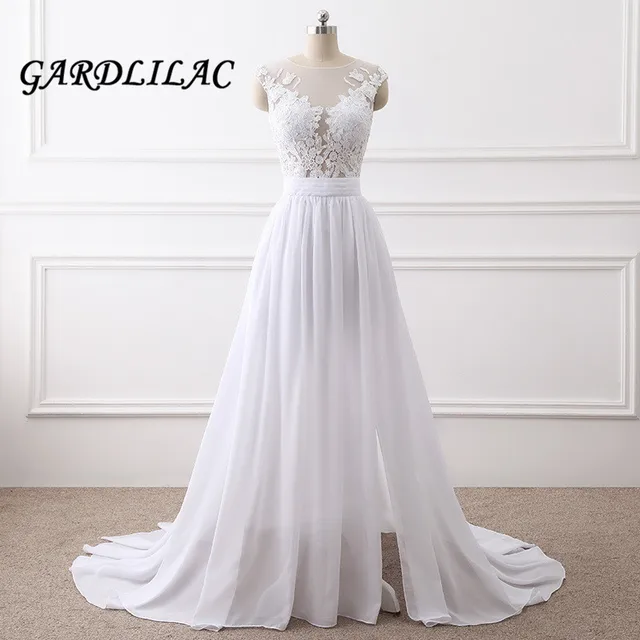 2019 White Beach Wedding Dresses Top See Though Lace Appliques Women