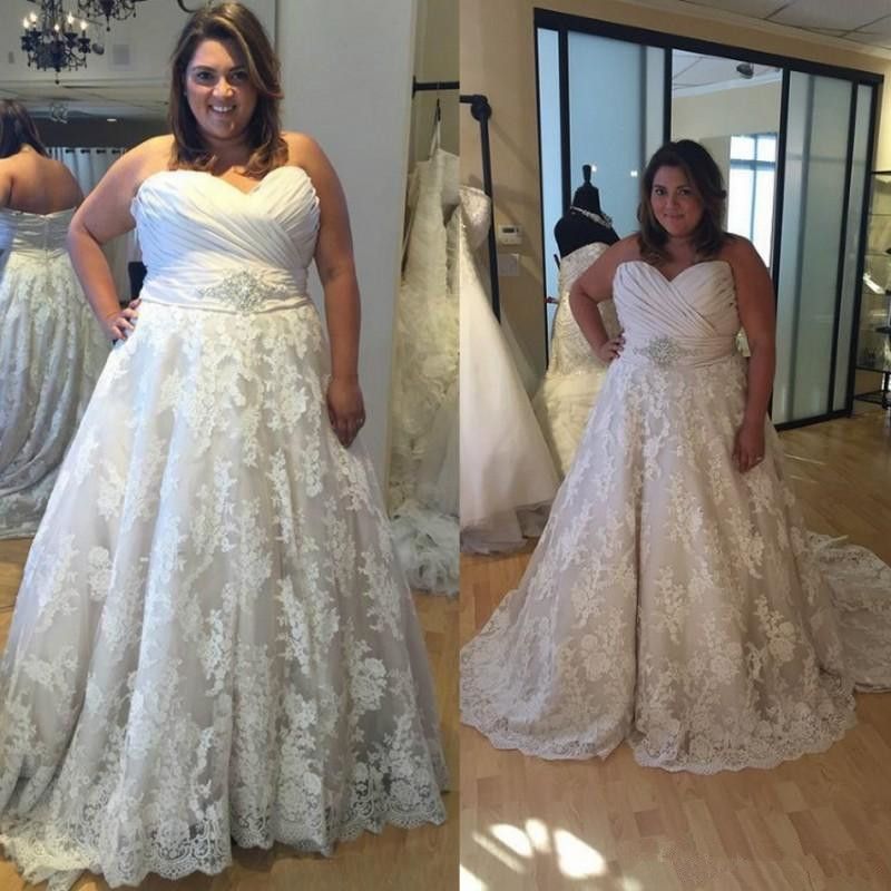 2019 Custom Made Plump Women Plus Size Lace Applique Wedding Dress