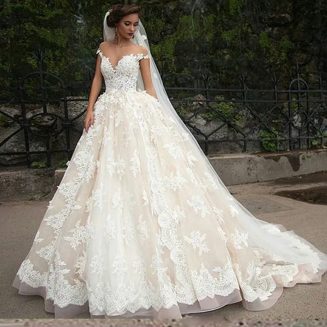 2019 Lace Wedding Dresses Sweetheart Neckline Cap Sleeve Ball Gown