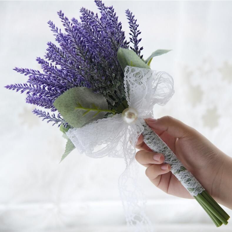 Purple Lavender Bridesmaid Bouquet Artificial Wedding Flowers Lace