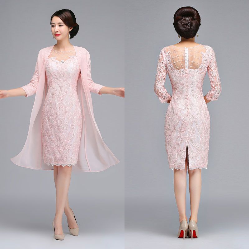 Cheap Pink 2018 Mother Of The Bride Dresses With Chiffon Jacket Lace